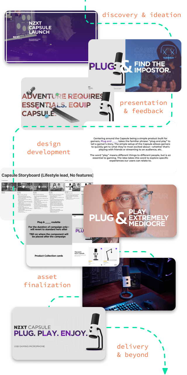 I brought the “Plug and _____” concept to life by turning a familiar phrase into a fun, gamer-focused story. I led the creative vision for the campaign video and developed the visual direction that scaled across banners, paid media, and other key touchpoints. Each piece reinforced NZXT’s values and spoke directly to the gaming community.