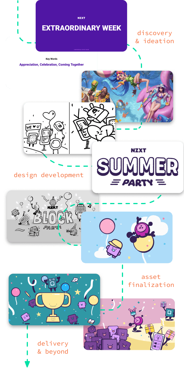 The NZXT Summer Party was a week-long celebration dedicated to showing appreciation for our incredible gaming community. This event wasn’t just a sale—it was a heartfelt tribute to the people who inspire our brand, brought to life through vibrant, festive visuals that captured the joy and excitement of coming together.